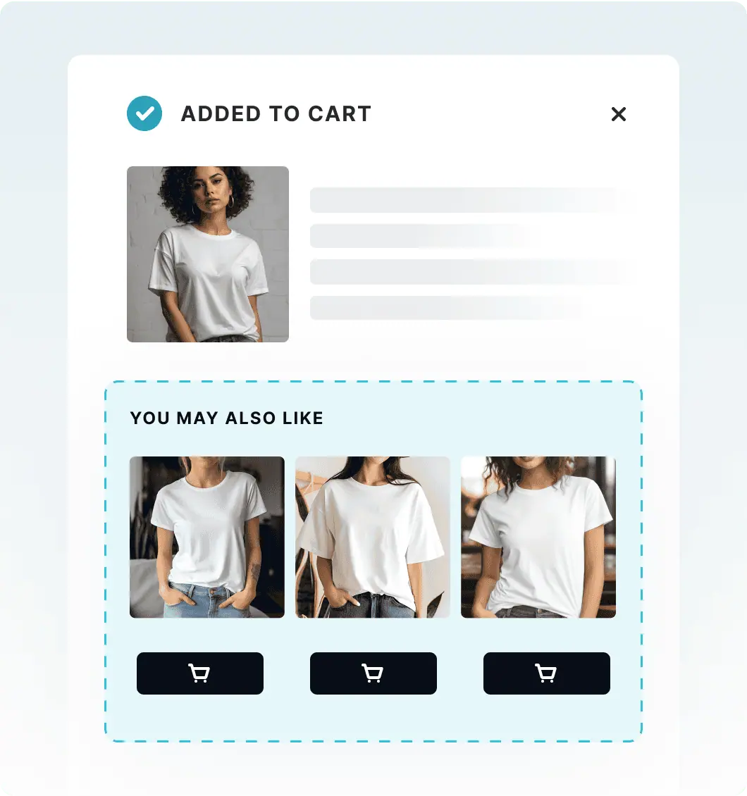 Aumenta il tuo potenziale di guadagno con un motore di raccomandazione alimentato dall'AI che ti permette di creare raccomandazioni di prodotti personalizzate e di migliorare l'esperienza di acquisto.